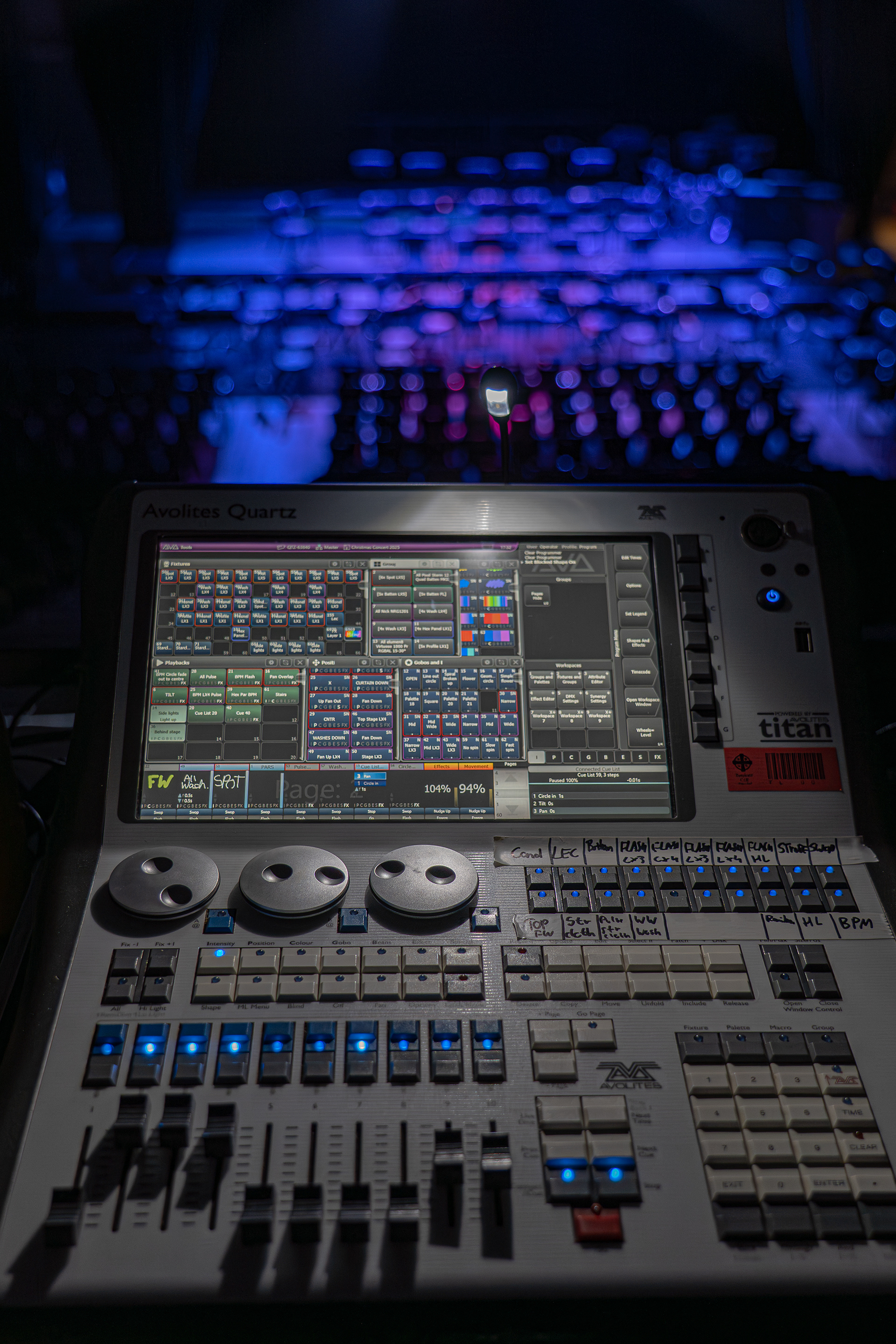 The Twyford Christmas concert is an ideal event to test working under pressure and working to tight deadlines. Everything is built from scratch in an empty sportshall and all within three days. Setup, Show, Packdown. I enjoyed operating this show despite there being no haze this year.