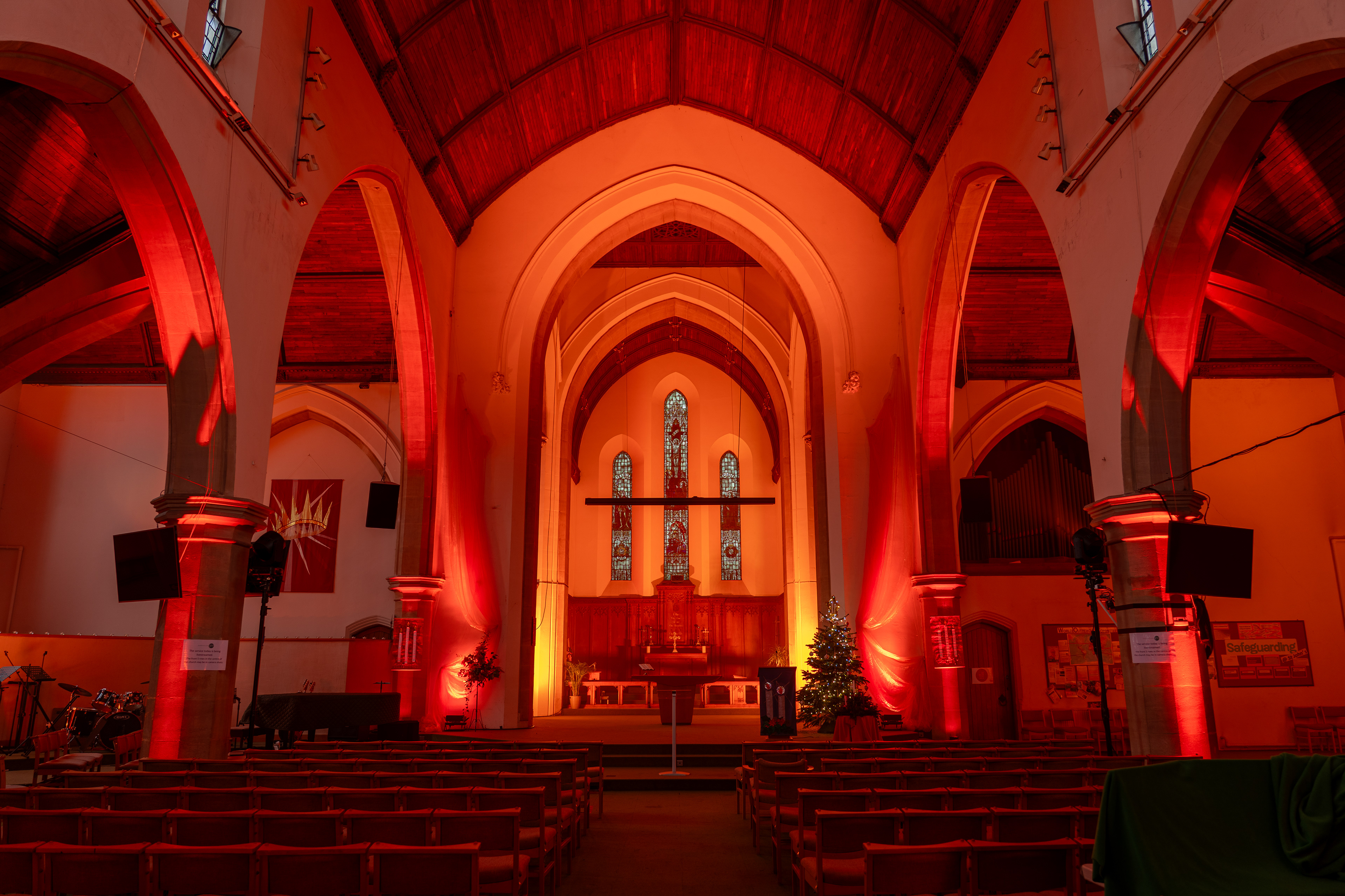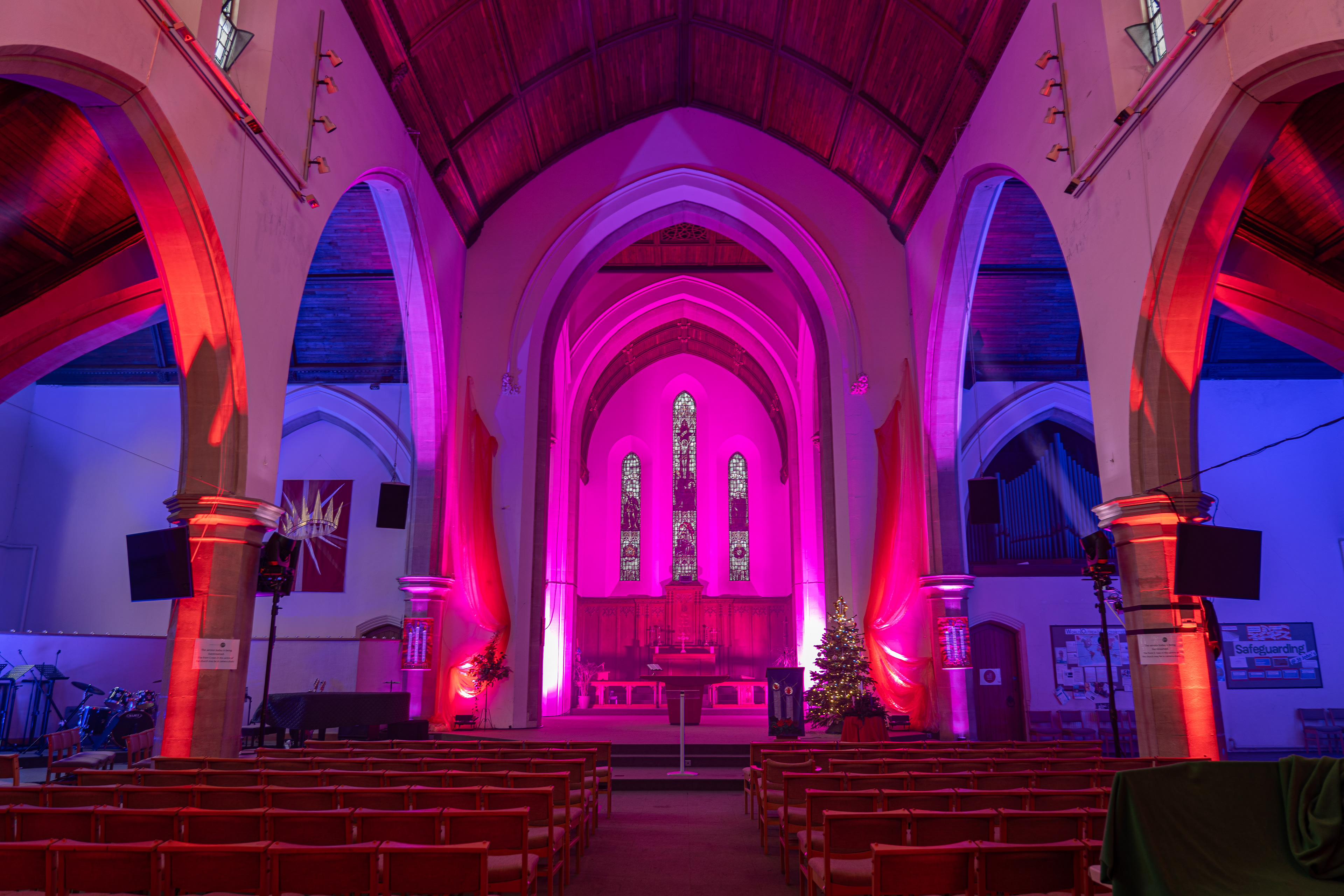 This year I had the great opportunity to design a fully wireless temporary lighting installation for St John's Church Ealing. Having everything controlled by CRMX alleviated the need for DMX Cables and made the setup simple and tidy. This project also involved the use of Teamviewer for remote access so that I could switch on the lights from anywhere in the world. The Ayrton Nandos were a lovely addition to this years kit as they offered a bright, movable light source that enabled some creative uses but also sufficient front wash. A massive thank you to Neg Earth Lights who supplied all the fixtures!