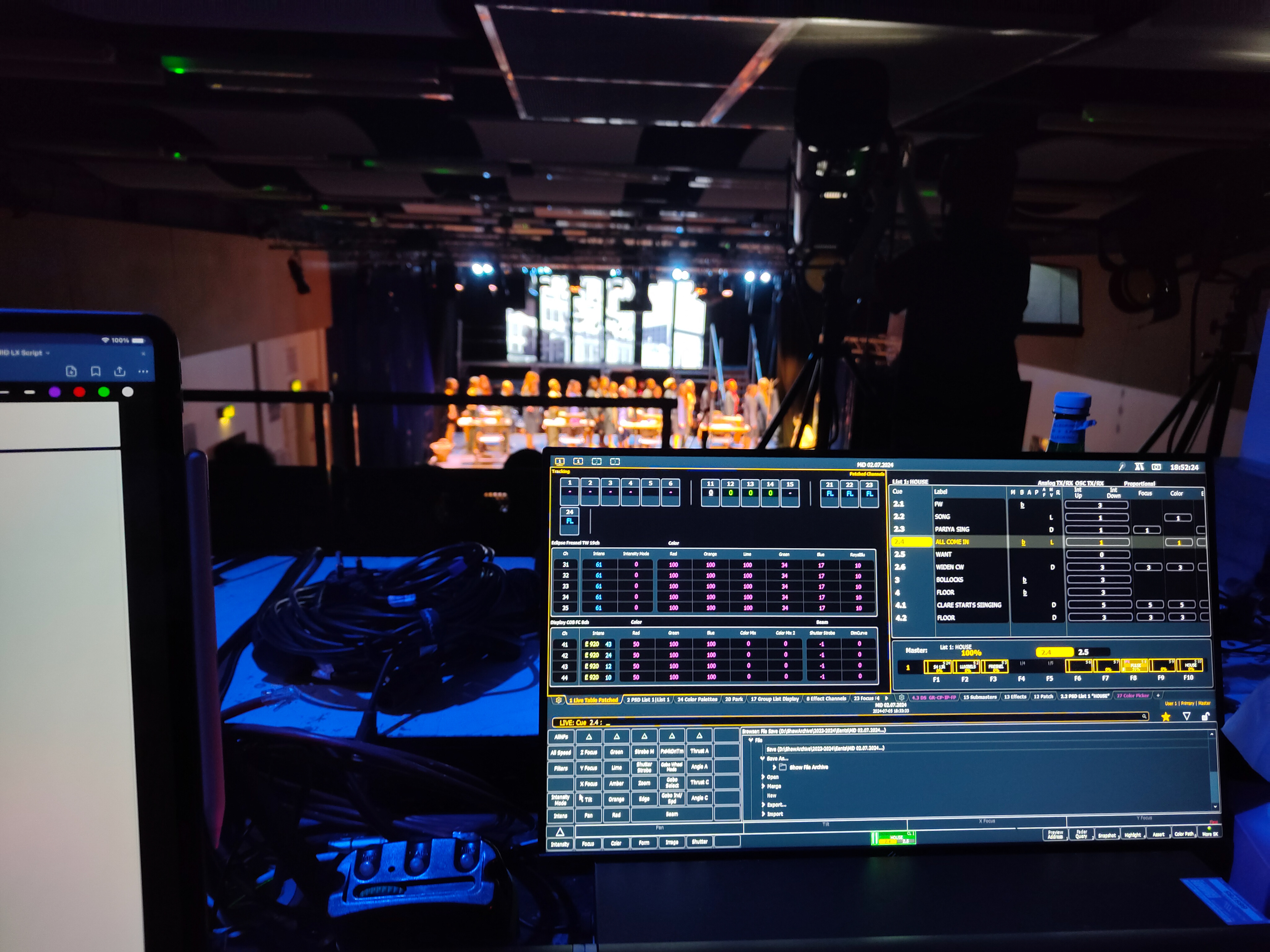 The Made in Dagenham production was fun to be apart of. It required a few large ground support structures to be built and required me to program on the go as I was only assigned to do lighting last minute. Additionally, projection mapping meant integrating lighting into Qlab so the entire show was run off of a stream deck. However, this show went very well and definitely tested my ability to work under pressure.
